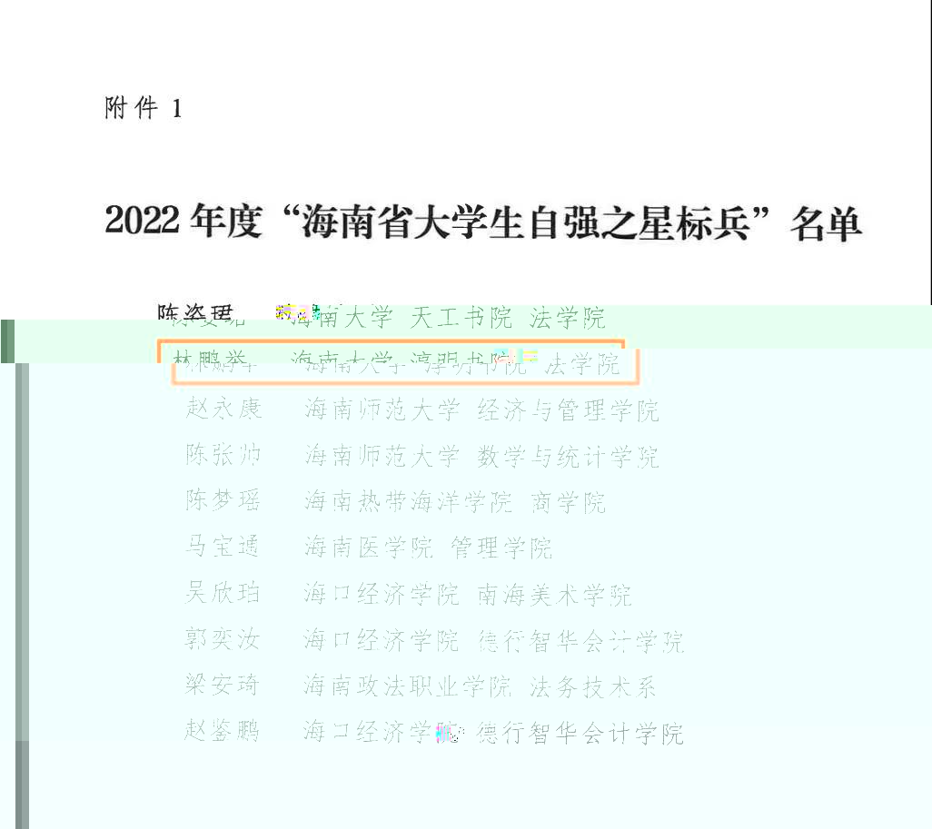 我院青年學子林鵬舉榮獲2022年度“海南省大學生自強之星标兵”稱号